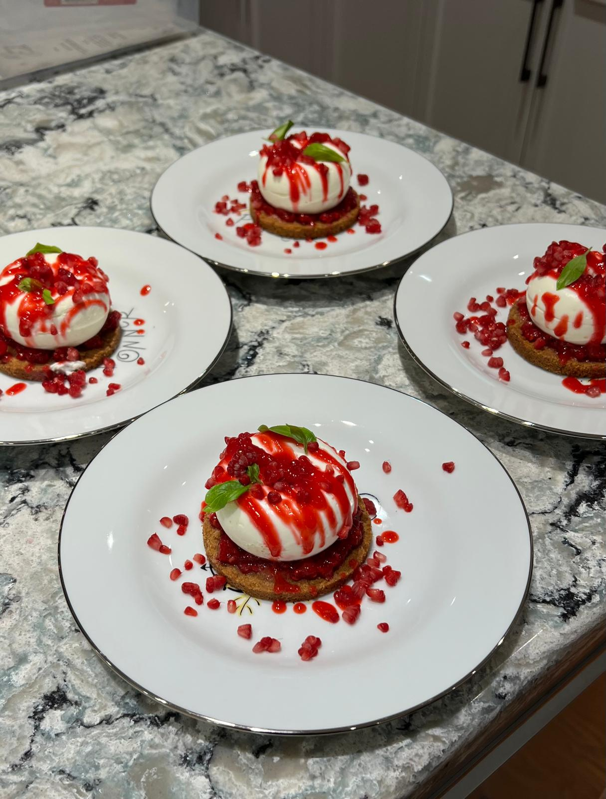 Chai latte panacota, Balsamic strawberries